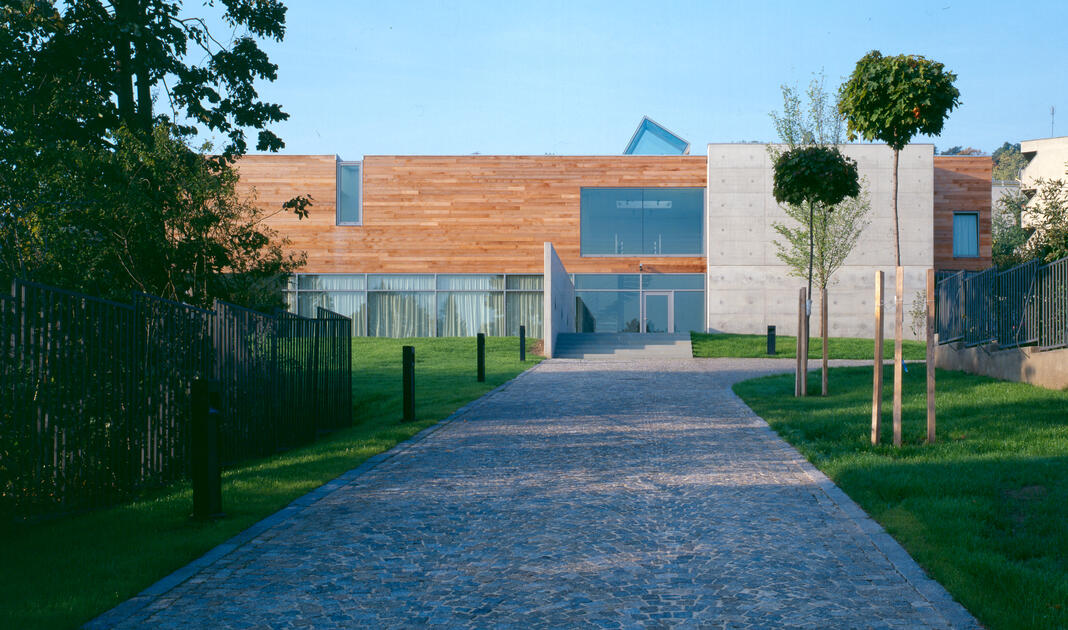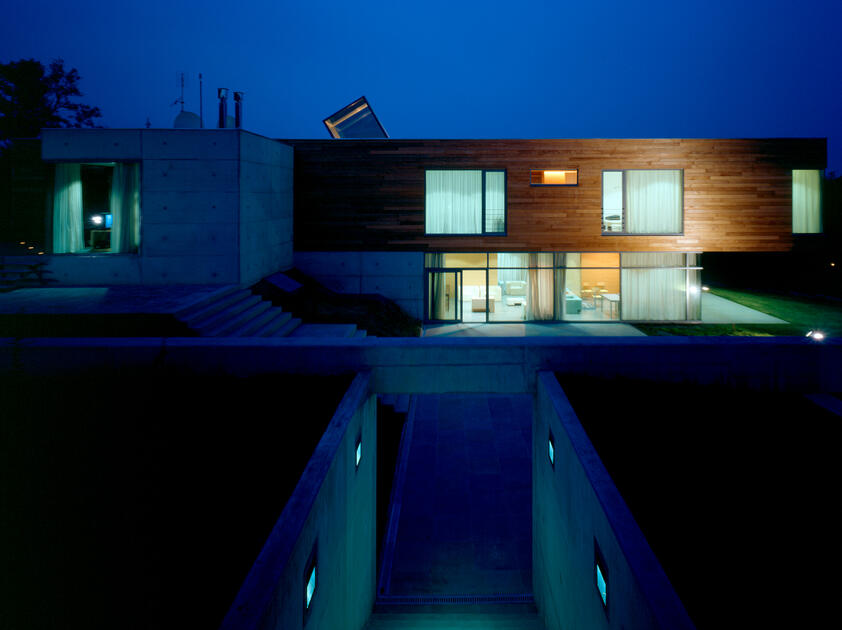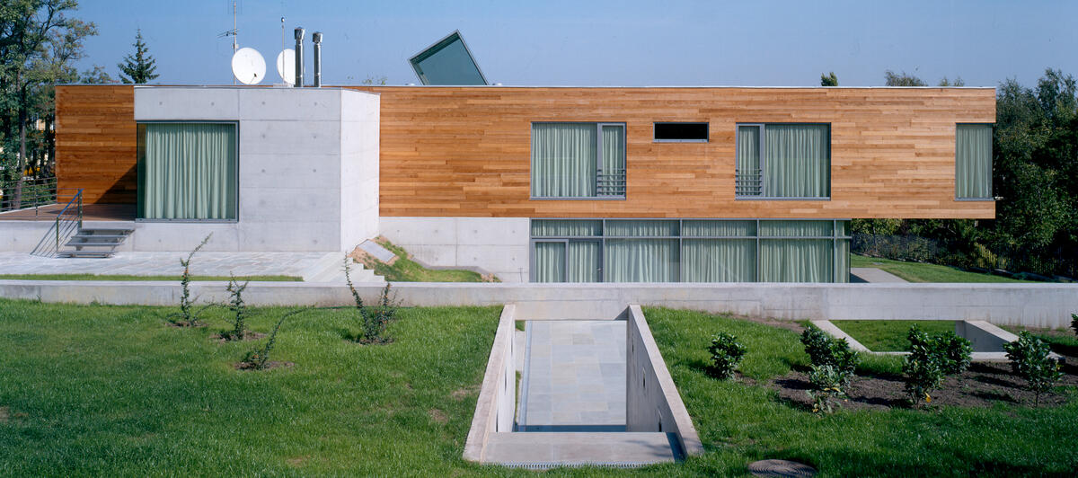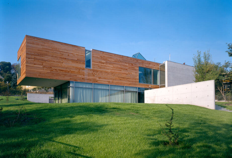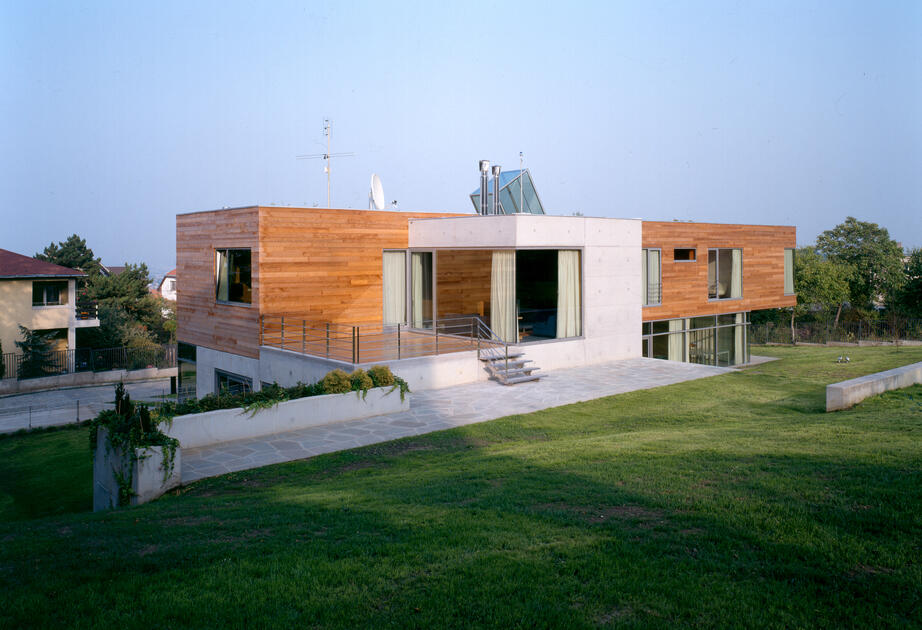 The site is within the picturesque part of Buda near the Istenhegy hill. Two themes determine the character of the building. The first is the building's location across the view from the entrance part of the plot and the main entrance in the axis of arrival. The second topic was laying the prism of the ambassador's apartment above the transparent representation spaces. The public zone leads to the garden and south of the residence, then the private part with terraces, swimming pool and gazebo.Read more