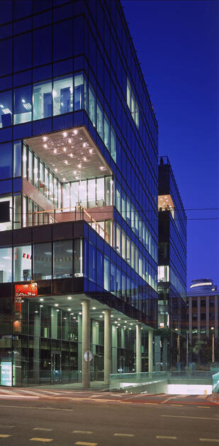 Kolárovo square is lined on the one hand by the distinctive expressive architecture of "Živnodom" and fragmented structure of low historic buildings in its lower part, which gives the square its onw unique character, on the other hand it is lined by university campus with its modern urbanism and architecture, the Park One building acts as a catalyst for these two different concepts. The moderate mass of the two towers corresponds to this part of the city, the shops on the ground floor add a smaller scale and dynamism.Read more