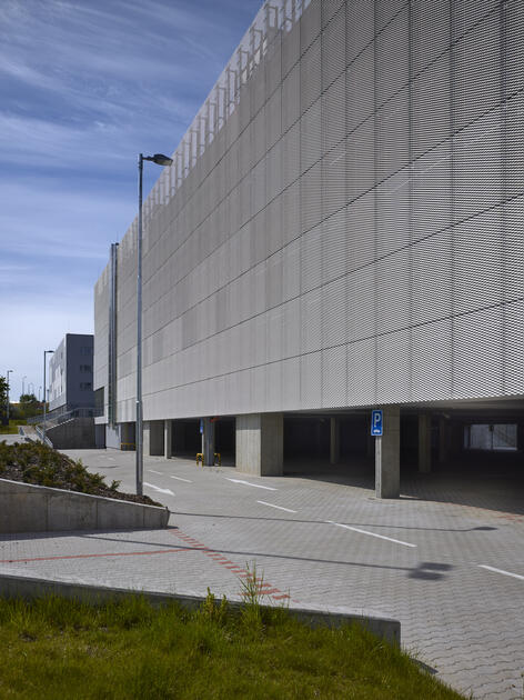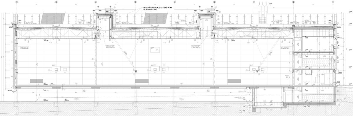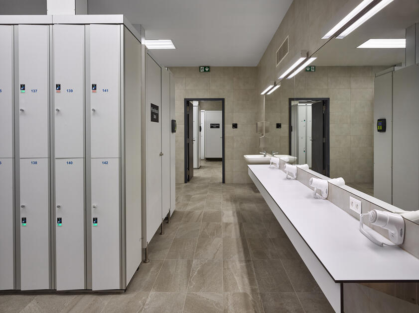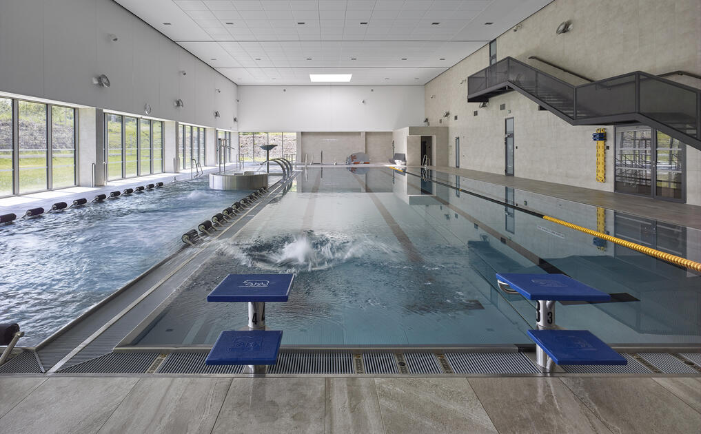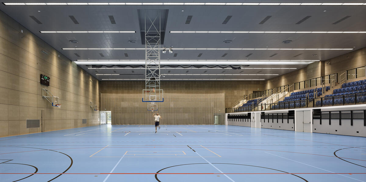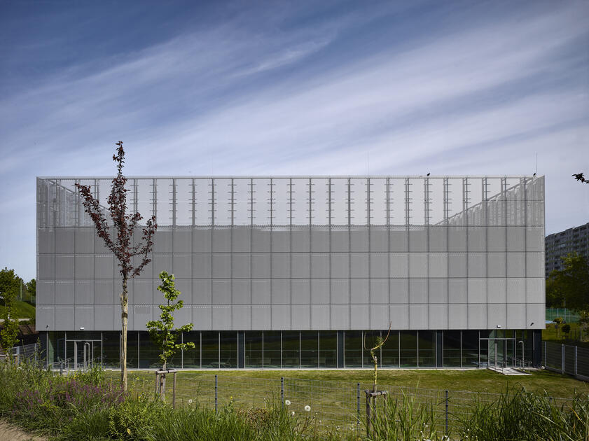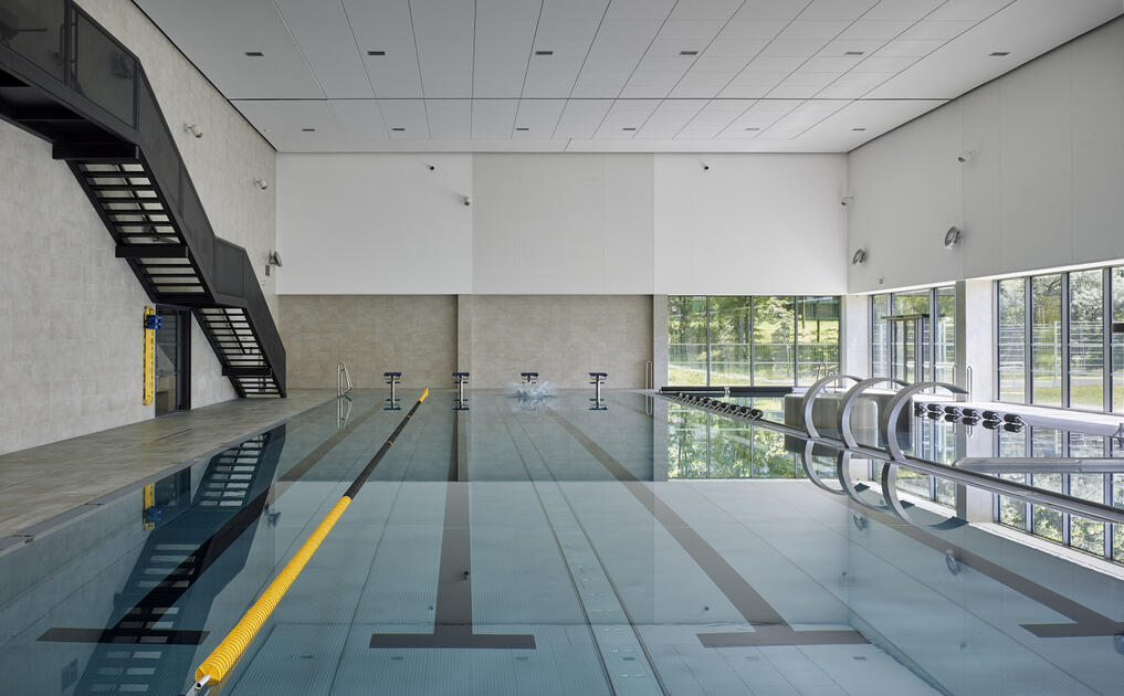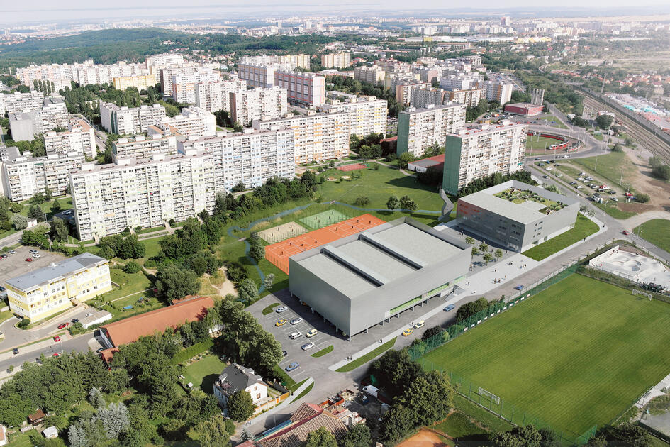 The sports hall integrates the basic hall space with grandstands and the service part with the locker rooms of athletes, the facilities of club teams, referees, offices and equipment. The pool building includes indoor swimming pool, wellness, fitness, restaurant and hotel. The Centre has an outdoor sun garden, tennis courts and beach volleyball courts.