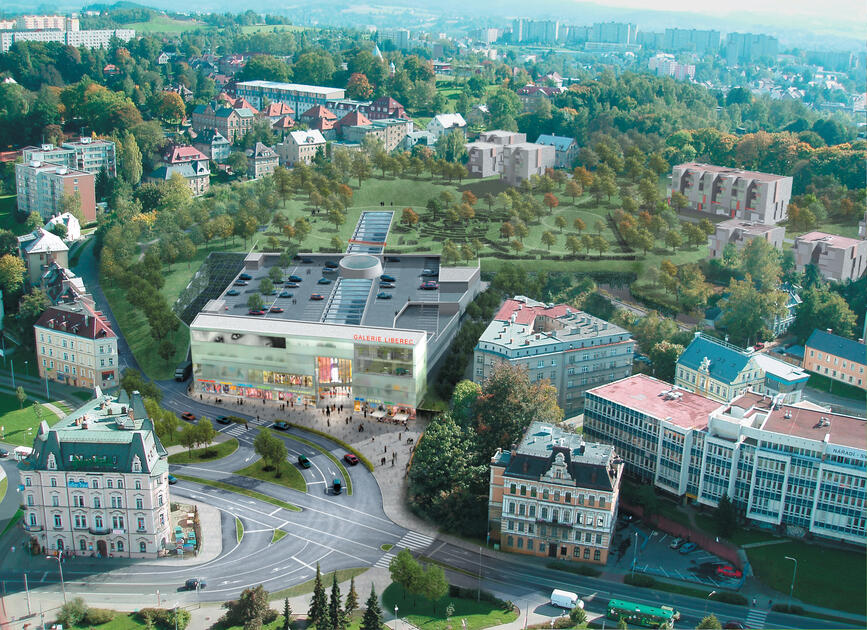 Obchodní a společenské centrum situované v centru města poblíž dopravního terminálu. Unikátní řešení využívá konfigurace svažitého pozemku a ukrývá dvě třetiny hmoty budovy pod úrovní terénu. Nejvyšší parkovací podlaží je zakryto masivní střešní konstrukcí umožňující provedení parkové úpravy plynule navazující na okolní terén.Číst více